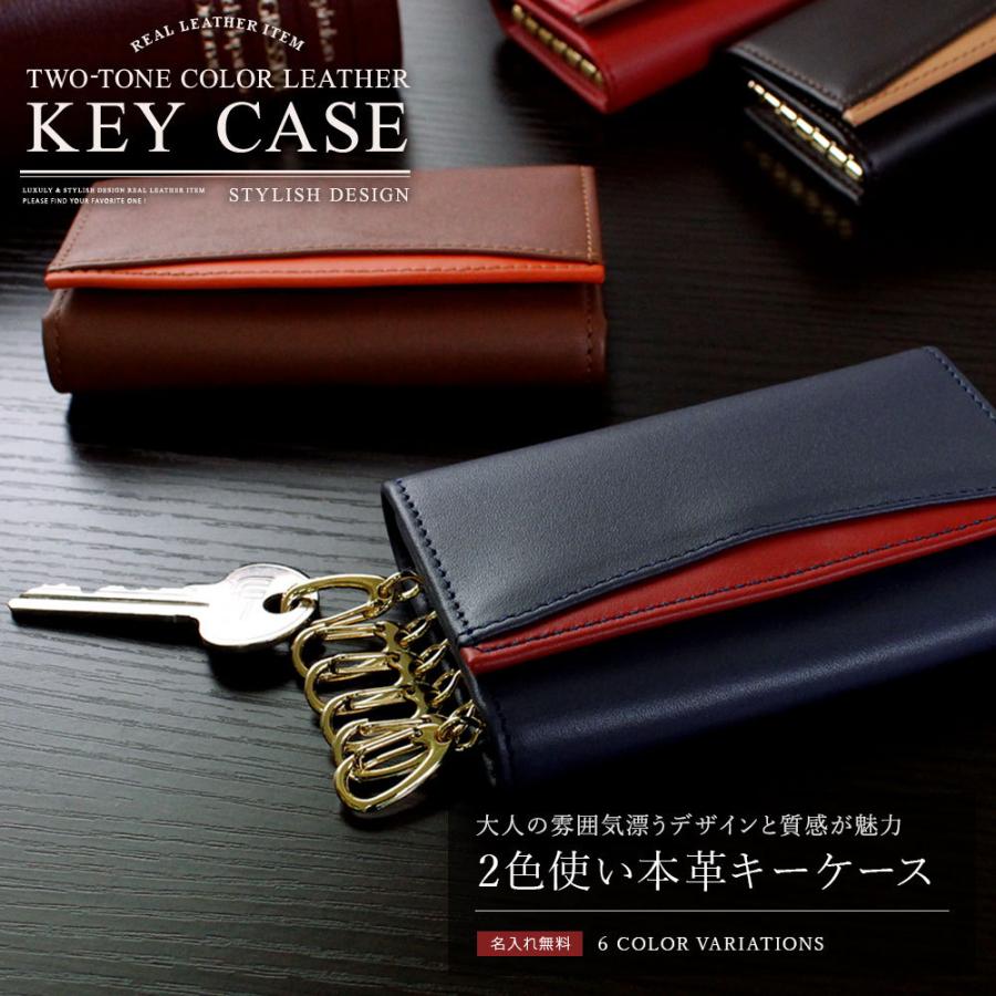 名入れ プレゼント キーケース メンズ 男性 ギフト 本革 誕生日 30代 40代 50代 彼氏 父 祝い 卒業記念品 バレンタイン 2色使い本革キーケース 2t Keycase 名入れギフトショップ トレジャー 通販 Yahoo ショッピング