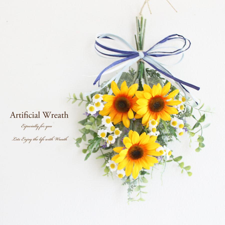 マート リース ひまわり ラベンダー 花 玄関ドア 造花 スワッグリース 夏リース おしゃれ 送料無料